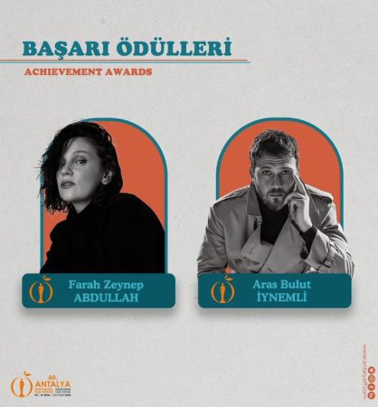 5-12 Ekim tarihleri arasında gerçekleştirilecek Uluslararası Antalya Altın Portakal Film Festivali’nde Başarı Ödülleri’nin sahipleri; Farah Zeynep Abdullah ve Aras Bulut İynemli.