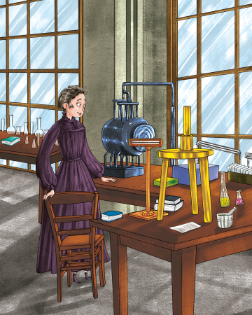Problem çözme, cesaret ve bilim insanları üzerine odaklanan 69 sayfalık kitap, hayatını bilime adayan, çalışmaktan asla vazgeçmeyen ve daima araştıran Marie Curie’nin özel hayatından çalışma hayatına pek çok şeyi anlatıyor. Kendisi gibi bilim insanı olan eşi Pierre Curie hakkında da bilgiler edindiğimiz bu kısa anlatımlı biyografide ayrıca karşımıza çıkan başka bilim insanları da var. Bunlar arasında ilk göze çarpanlar X-ışınlarını keşfeden Alman fizikçi Wilhelm Röntgen ve tüm zamanların en iyi fizikçisi olarak kabul edilen Albert Einstein.